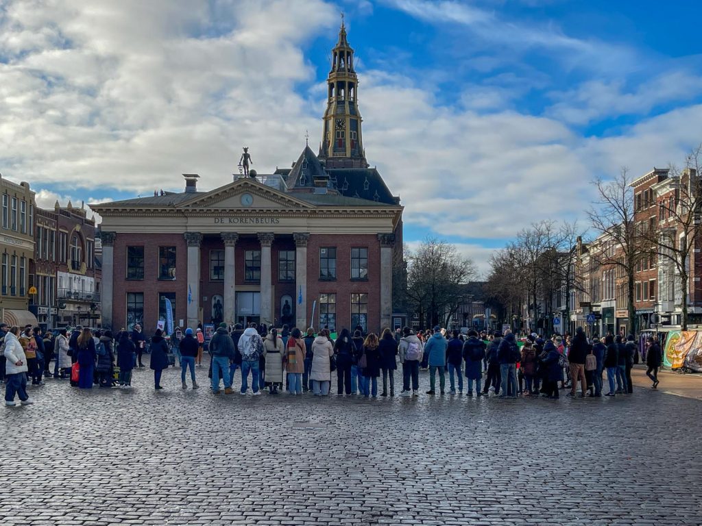 De demonstratie zou eerst plaatsvinden op ede Grote Markt, maar werd uiteindelijk verplaatst naar de Vismarkt.