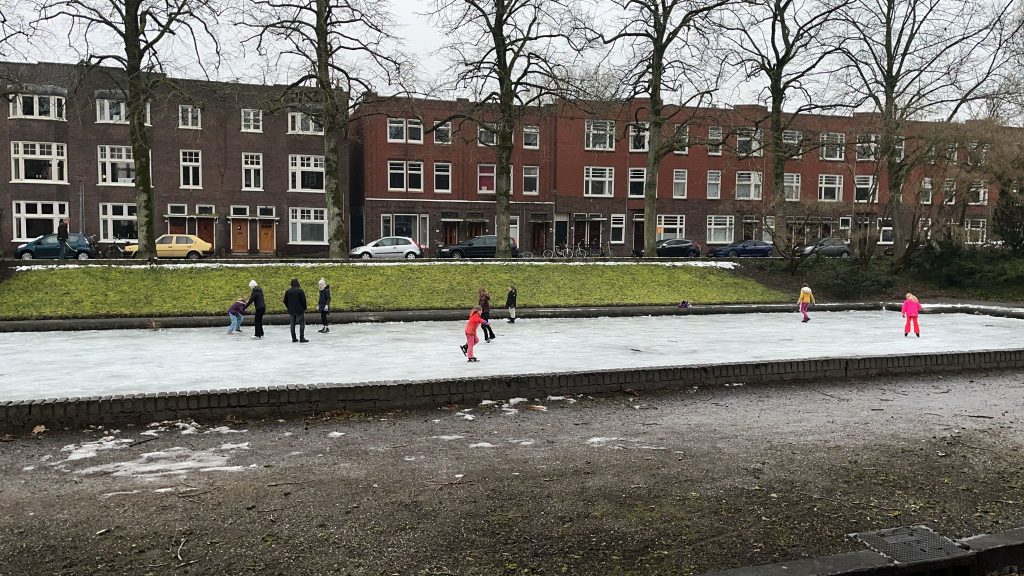 Ook op de Hyacintstraat in de Oosterparkwijk wordt geschaatst.