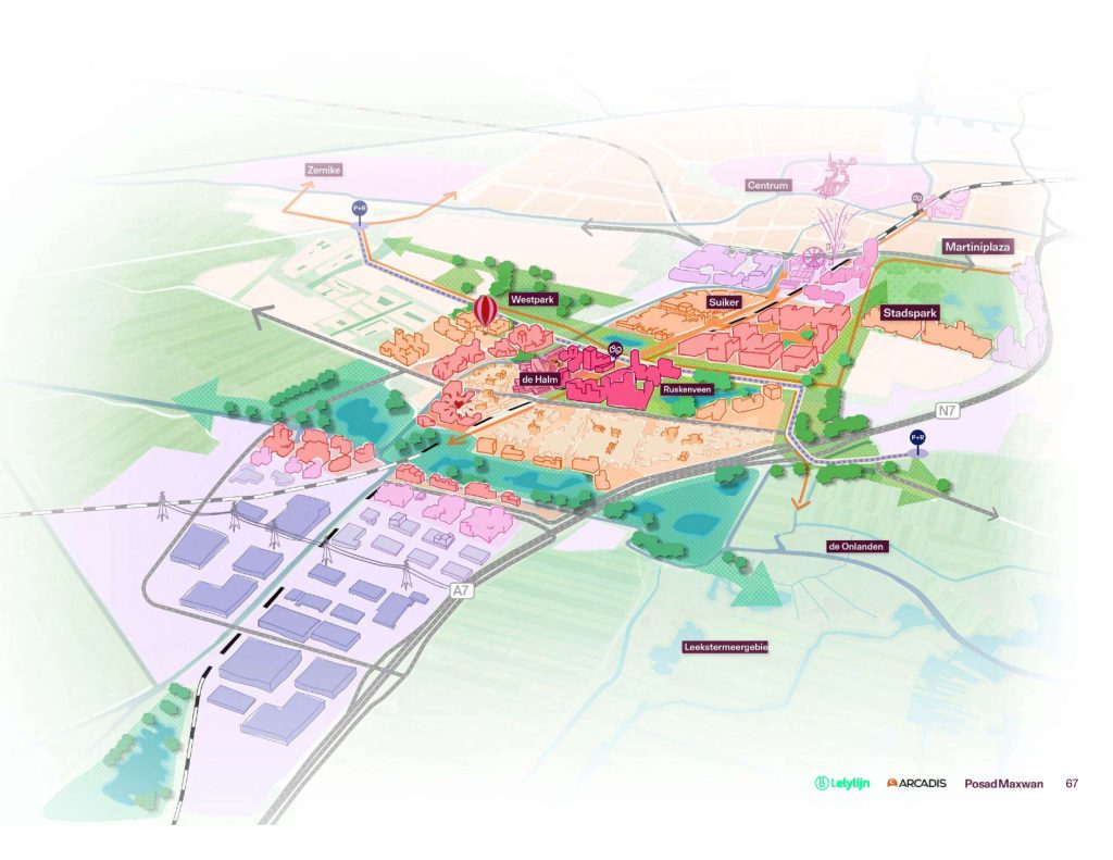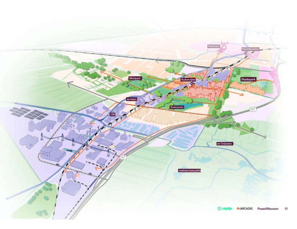 Omdat de Lelylijn verhoogd gaat rijden, ontstaat er ruimte voor economische groei en productiviteit aan de Westflank van Groningen. Zo verdwijnt de ‘barrière’ en is er meer ruimte voor innovatie, werk en recreatie.