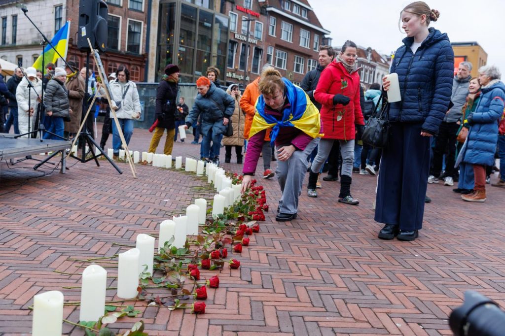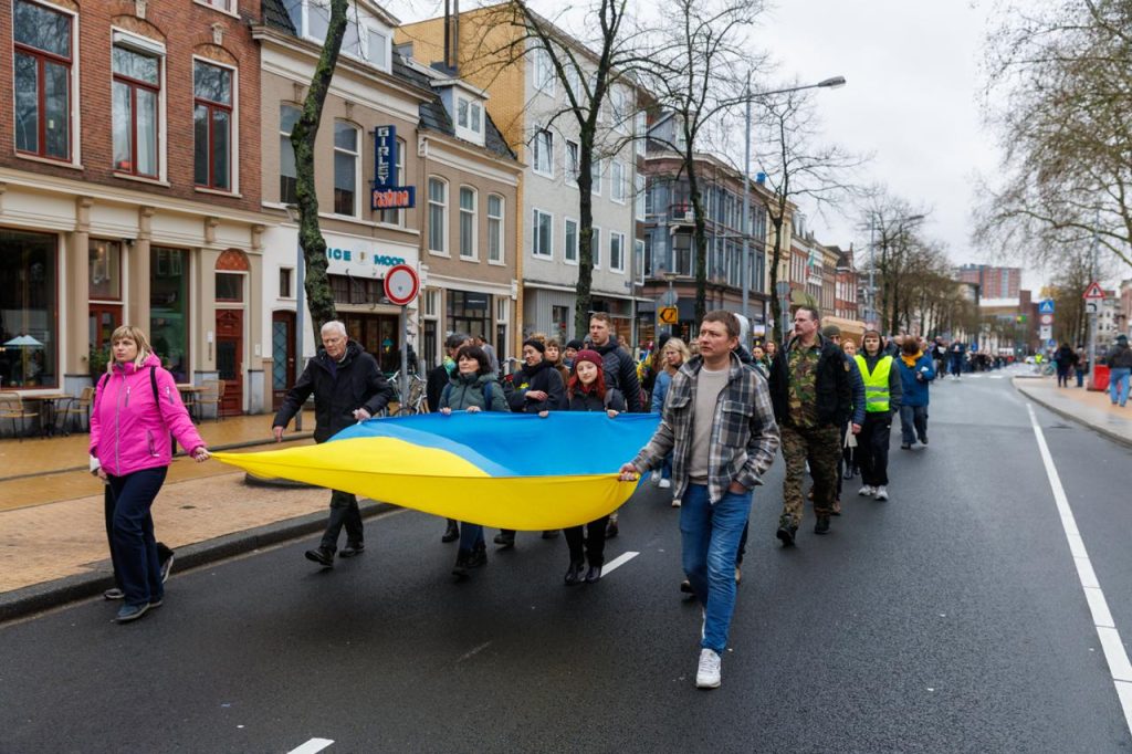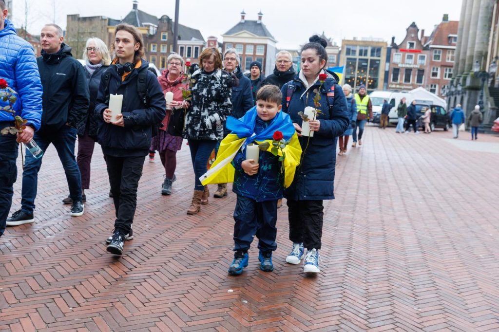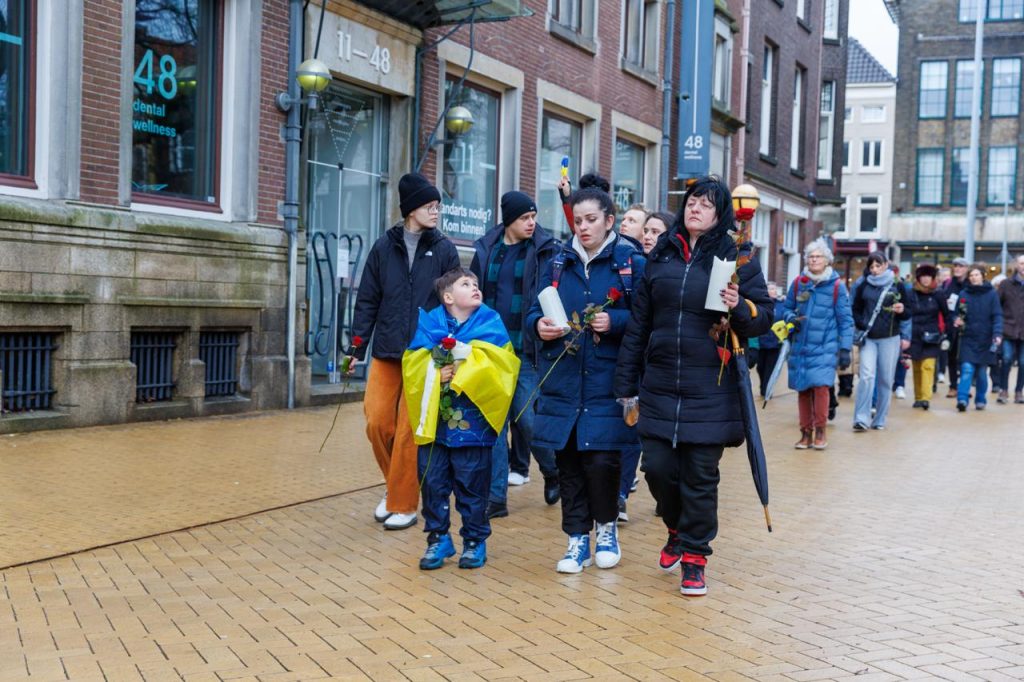 Het programma zondag begon met een mars die gelopen werd door de binnenstad. De mars werd voorafgegaan door een aantal mensen die de Oekraïense vlag droegen. Daarachter mensen met kaarsen en rozen die later bij terugkomst op de Grote Markt op het plein werden gelegd. Daarna volgden er verschillende toespraken. “En laten we eerlijk zijn, wij willen toch ook dat Europa moed toont, haast maakt en Oekraïne helpt. Zonder eerst naar de overkant van de oceaan te hoeven kijken?”, sprak burgemeester Roelien Kamminga de aanwezigen toe. De woorden konden rekenen op applaus.