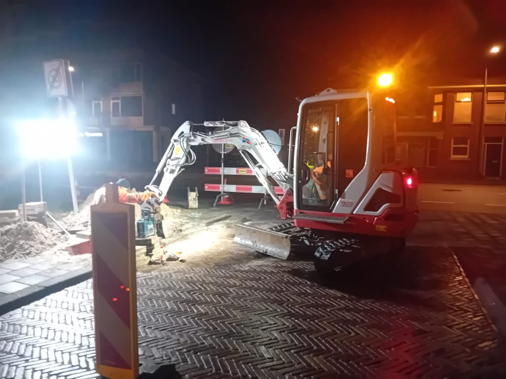 Verschillende huizen in de Groningse woonwijk De Hoogte zitten zonder stroom. Dat komt door een kabelbreuk. Op dit moment wordt met een graafmachine gezocht naar de verstoring in de kabel om die te verhelpen.