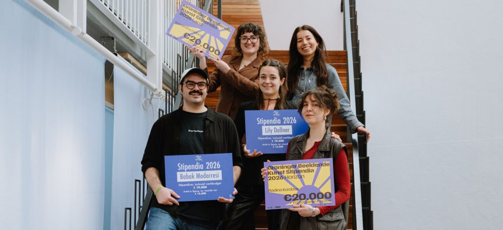 Cultuurwethouder Janette Bosma reikte vrijdag cheques uit aan vier opkomende kunstenaars. Samantha Pellarini en Radina Kordova wonnen het Groninger Beeldende Kunst Stipendium, de Noordenaars Stipendia zijn toegekend aan Lily Dollner en Babak Modarresi.