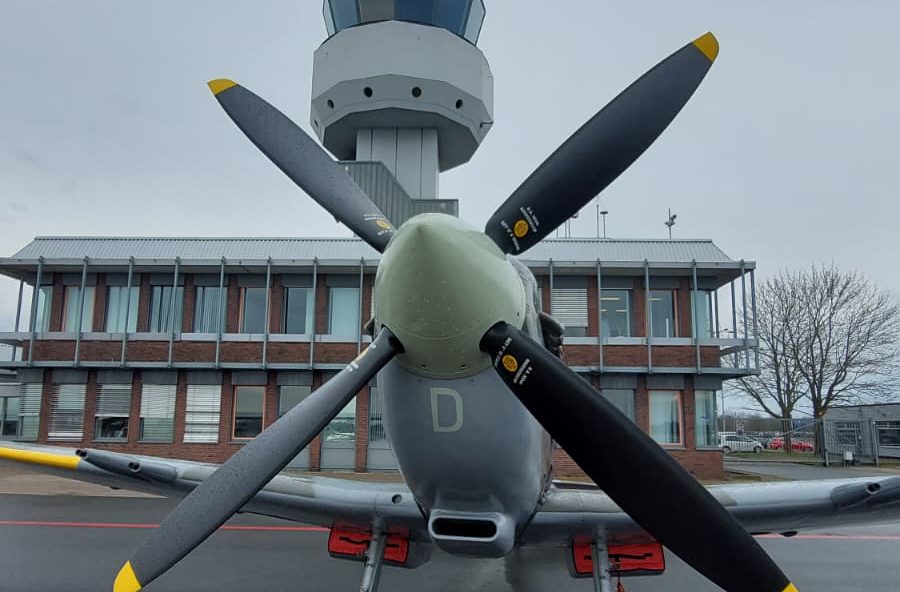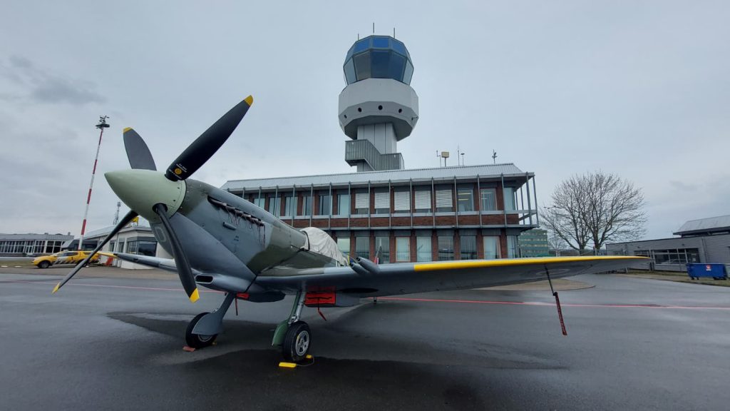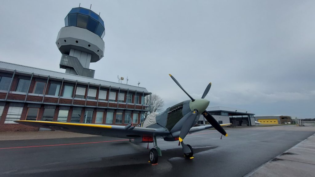 Na een paar dagen op Airport Eelde te hebben gestaan, was het weer vrijdagmiddag goed genoeg: de volledig gerestaureerde Mk. XVI Spitfire kon de reis naar Noorwegen vervolgen vanaf Groningen Airport Eelde.