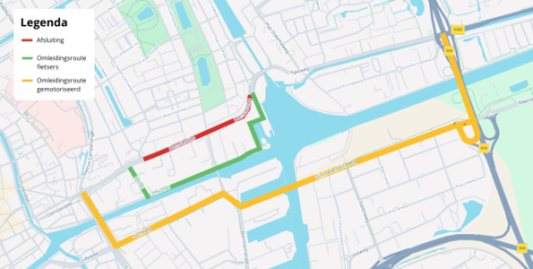 Tijdens de werkzaamheden is het fietspad aan de zuidzijde van het Damsterdiep niet bereikbaar. Fietsers worden omgeleid via het Eemskanaal. Daarvoor wordt de kade weer tijdelijk opengesteld. Bestemmingsverkeer wordt begeleid door verkeersregelaars.