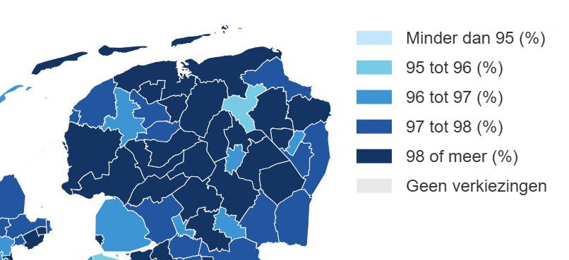 Dat ligt in Groningen een stuk lager: slechts 95,1 procent van de inwoners mag over een week zijn of haar stem uitbrengen. Ter vergelijking: in vijf van de zes buurgemeenten ligt het aantal stemgerechtigden hoger dan het landelijk gemiddelde, boven de 98 procent.