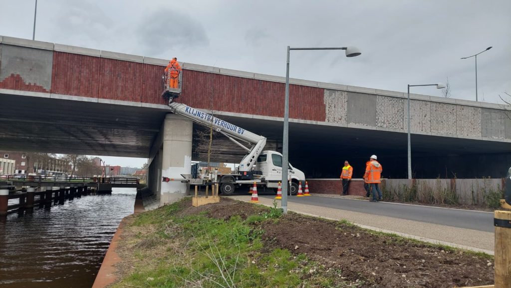 Het probleem met de steenstrips die de viaducten van de zuidelijke ringweg bekleden, kwam woensdag aan het licht nadat een paneel van de Julianabrug in het Noord-Willemskanaal viel. Dat vallende paneel miste een aantal roeiers op een haar na. Bij de Julianabrug zijn donderdag al aanvullende inspecties uitgevoerd. Tijdens deze inspecties bleek dat meerdere gevelplaten instabiel waren.