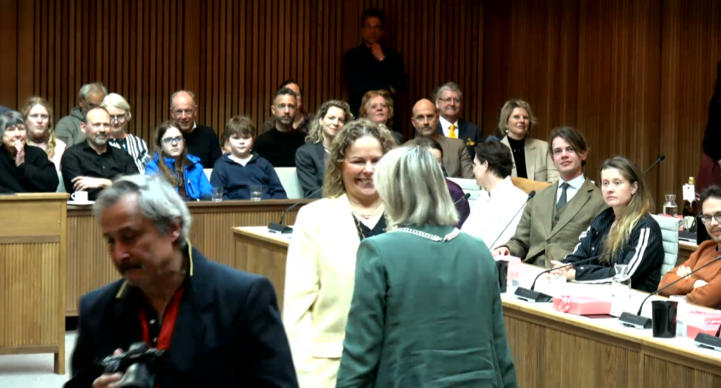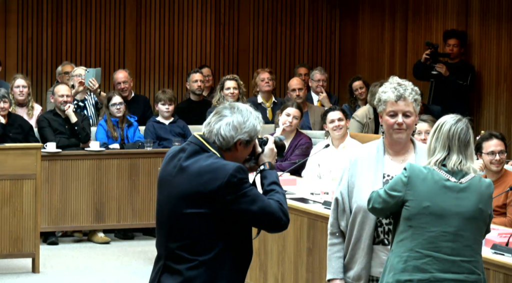 Daarnaast zijn er negentien andere raadsleden van wie afscheid werd genomen. Van Justine Jones van GroenLinks bijvoorbeeld. Kamminga: “Voor hoe lang nemen we afscheid van je? Afhankelijk van de verdere bestuursvorming zou dit een tijdelijk afscheid kunnen zijn. Aan het eind van de vorige raadsperiode kwam je in de gemeenteraad terecht. Je hebt grote betrokkenheid getoond bij het aardbevingsdossier. Ook heb je je sterk gemaakt voor het voorlezen aan kinderen door raadsleden op scholen en bibliotheken. En je hebt je recent nog ingezet voor internationals om voor hen de verkiezingen zichtbaarder te maken.”