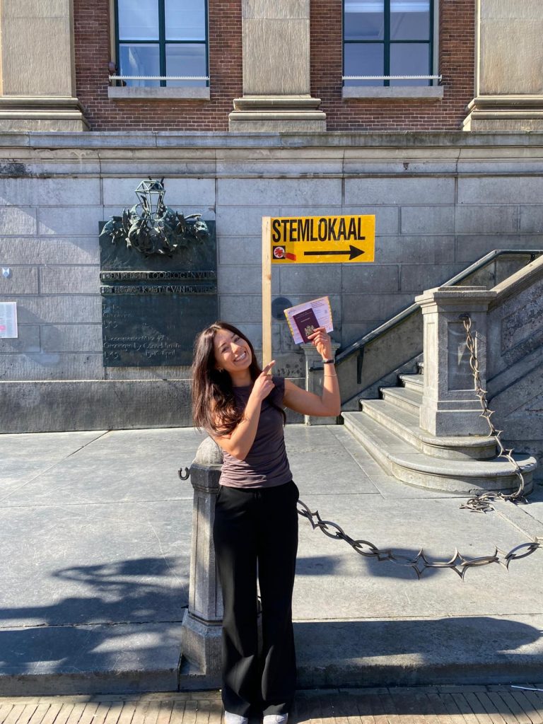 Wieke van Heteren is de lijsttrekker voor Student & Stad. Zij heeft haar stem uitgebracht op het stembureau in de Akerk. Student & Stad boekte vier jaar geleden een forse winst waarbij de partij van één naar drie zetels ging.