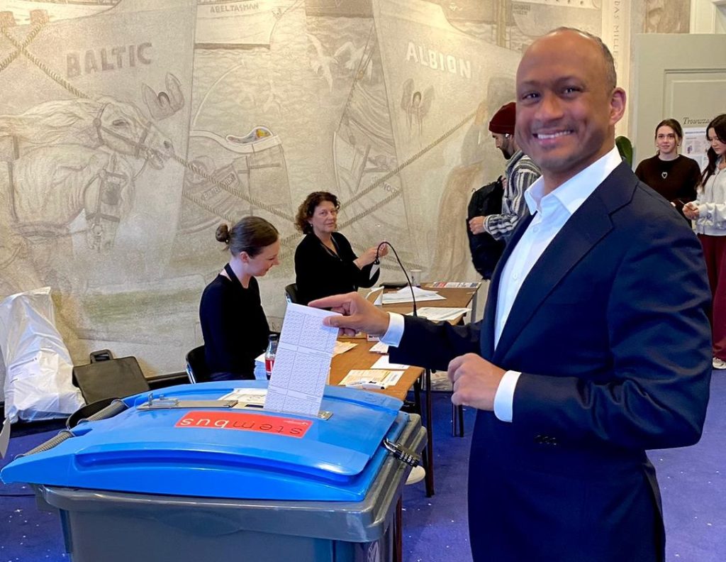 Lijsttrekker Jim Lo-A-Njoe van D66 heeft zijn stem uitgebracht. Lo-A-Njoe bezocht het stembureau in het Stadhuis op de Grote Markt.