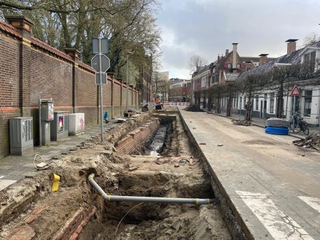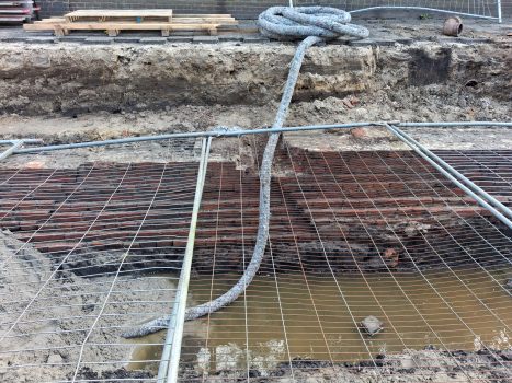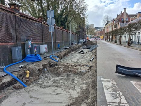 De werkzaamheden vinden plaats tussen de Sint Walburgstraat en de Maagdenbrug. Op de plek wordt een nieuw riool geïnstalleerd. Bij deze werkzaamheden moet men behoorlijk diep de grond in, waarbij dus de oude muur werd aangetroffen. Wat opvalt is dat na al die jaren de muur er nog kaarsrecht bij ligt. In de zeventiende eeuw was het gebruikelijk dat leerling-metselaars de funderingen onder de grond aanlegden, terwijl de meester-metselaar verantwoordelijk was voor het zichtbare deel boven de grond.