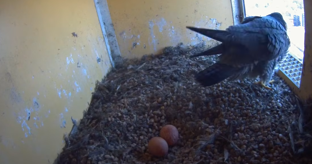 Het paartje slechtvalken dat hun thuis heeft gevonden in de nestkast aan het Gasuniegebouw heeft dit weekend hun tweede ei gelegd. Dat was te zien op livebeelden waarbij liefhebbers mee kunnen kijken in de nestkast.