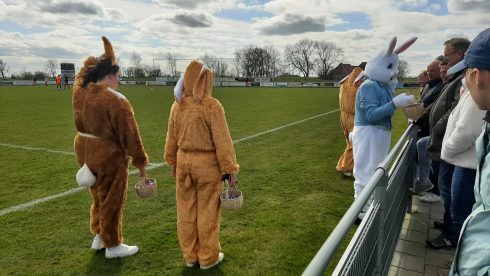 Het was maar goed dat er vooraf paaseitjes werden uitgedeeld, want zo viel er toch wat te genieten op het winderige sportpark in de eerste helft. Van het spel moest het niet komen, want dat was van beide kanten bar en boos. De enige twee hoogtepunten kwamen vanuit een dood spelmoment. Na tien minuten gaf Valentijn van Laar van ON Menno Mulder een klein duwtje en de bal ging op de stip. Tim Hoff schoot Winsum op voorsprong. Na 40 minuten kreeg ON een vrije trap op de rand van het strafschopgebied en specialist Mart Bloeming knalde hard raak: 1-1.