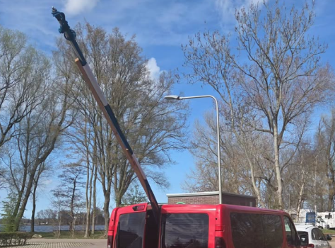 De controle werd uitgevoerd samen met een motorrijder van Team Verkeer. “De bestuurder heeft een bekeuring gekregen”. Ook mocht er op deze manier niet verder gereden worden. De politie wijst erop dat lading aan de achterzijde van een voertuig maximaal één meter mag uitsteken. Met bijna drie meter vormde de telescoopmast een direct gevaar voor het overige verkeer.