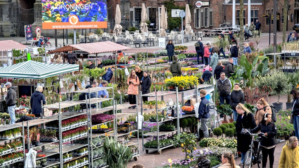 Afgelopen vrijdag stonden er meer dan honderd kramen verspreid over de Oude Ebbingestraat, Guldenstraat, Grote Markt, Vismarkt en het A-kerkhof. Daarmee is de Bloemenjaarmarkt de grootste van Noord-Nederland. Het evenement is cruciaal voor de lokale economie. “Veel mensen plakken een hotelovernachting aan hun bezoek vast,” aldus de GCC. “Dat is niet alleen gunstig voor de handelaren, maar geeft ook de horeca in de stad een flinke impuls.”