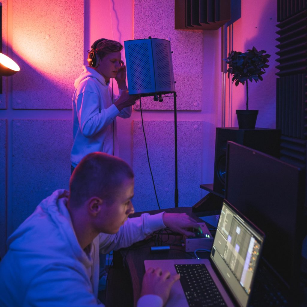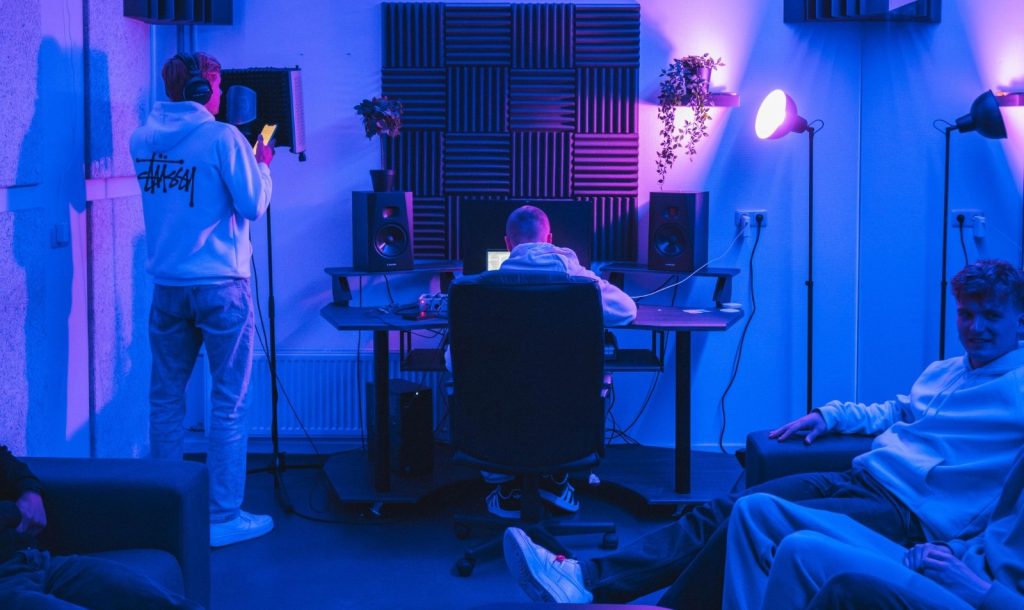 “Ik heb eindexamen gedaan op het Stadslyceum. Eén van de jongens, David, kende ik toen al. Eigenlijk is toen het idee ontstaan om na de middelbare school muziek te blijven maken. Maar wat zijn de mogelijkheden? Hoe kun je jezelf ontwikkelen? Die bleken destijds heel beperkt te zijn. In 2023 kwamen we in aanraking met Open Studios. Dat was toen een nieuw concept. Op verschillende plekken in de stad, onder andere in de binnenstad, Paddepoel en dus in Lewenborg, werd de mogelijkheid geboden om samen met een producer muziek te gaan maken.”