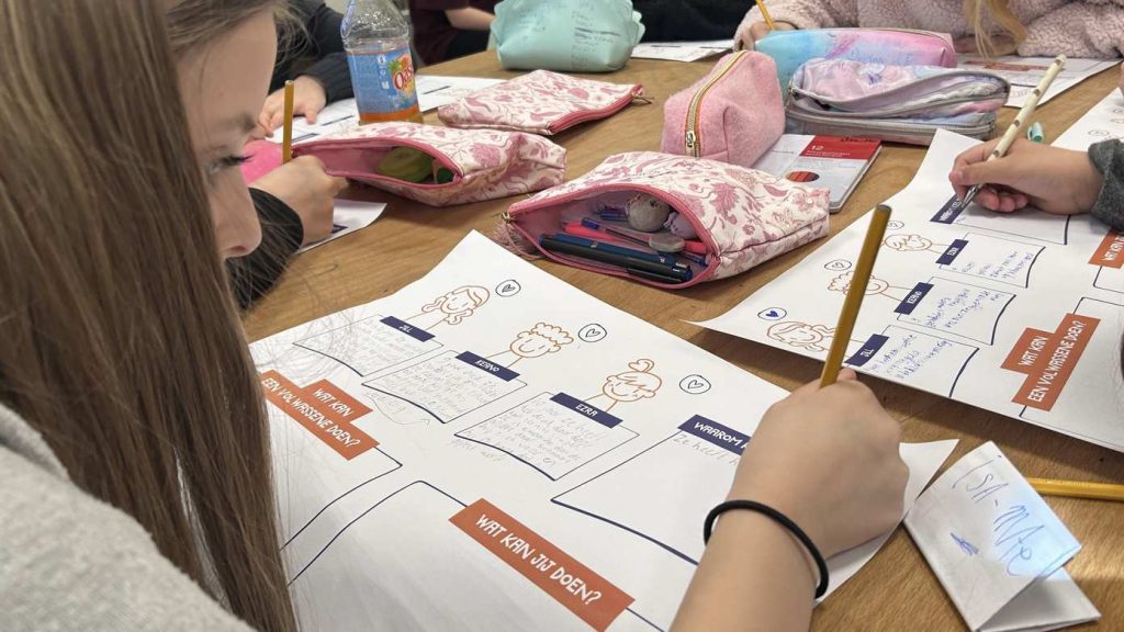 De leerlingen mogen nadenken over drie grote thema’s: armoede, (on)veilig thuis en gezondheid. Ze bespreken wat er speelt in hun eigen omgeving, welke problemen ze zien en welke oplossingen volgens hen echt het verschil kunnen maken.