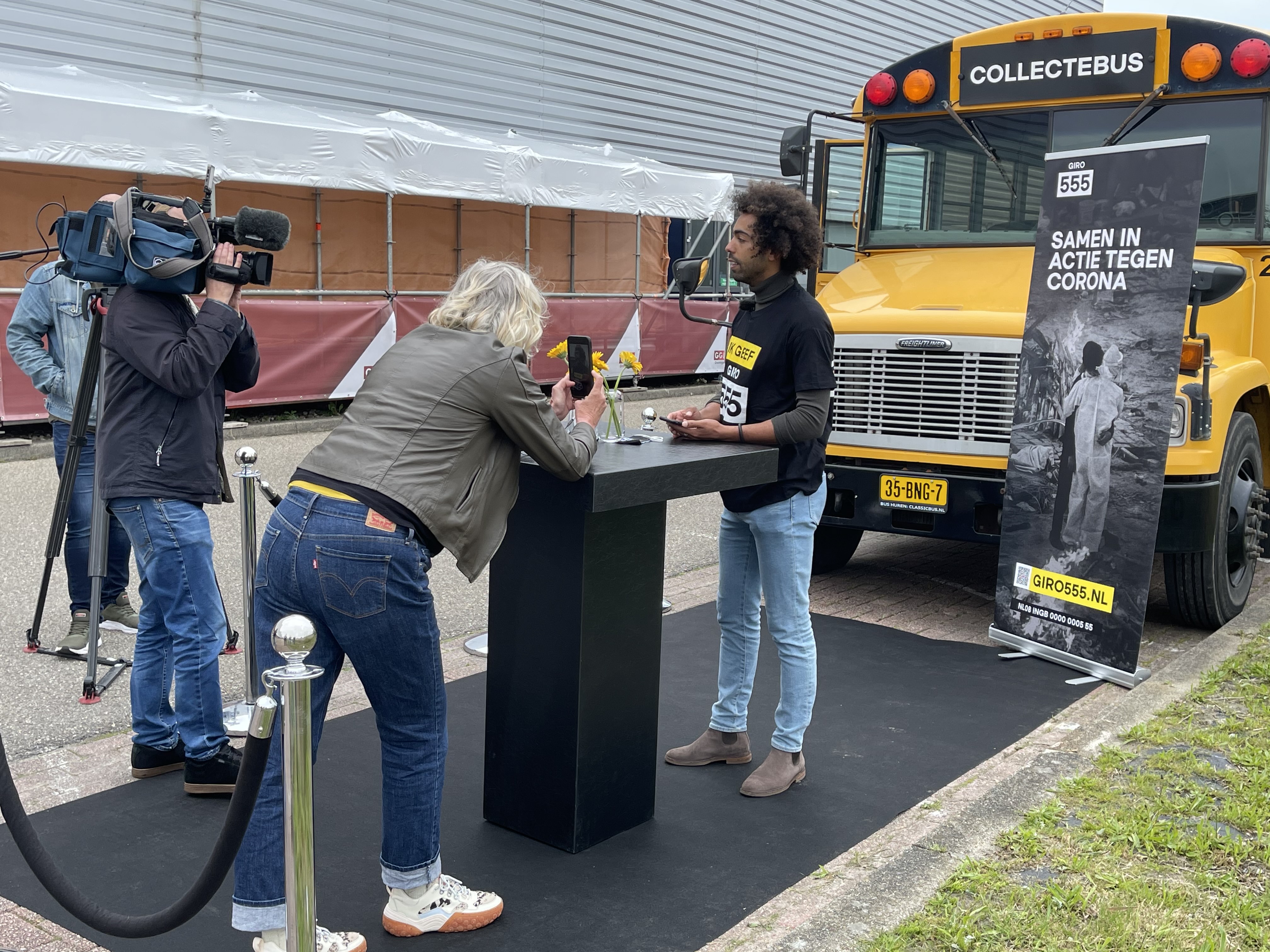 De collectebus van Giro 555 heeft vanmiddag bij de vaccinatie drive-in op Kardinge aandacht gevraagd voor de situatie van armere…