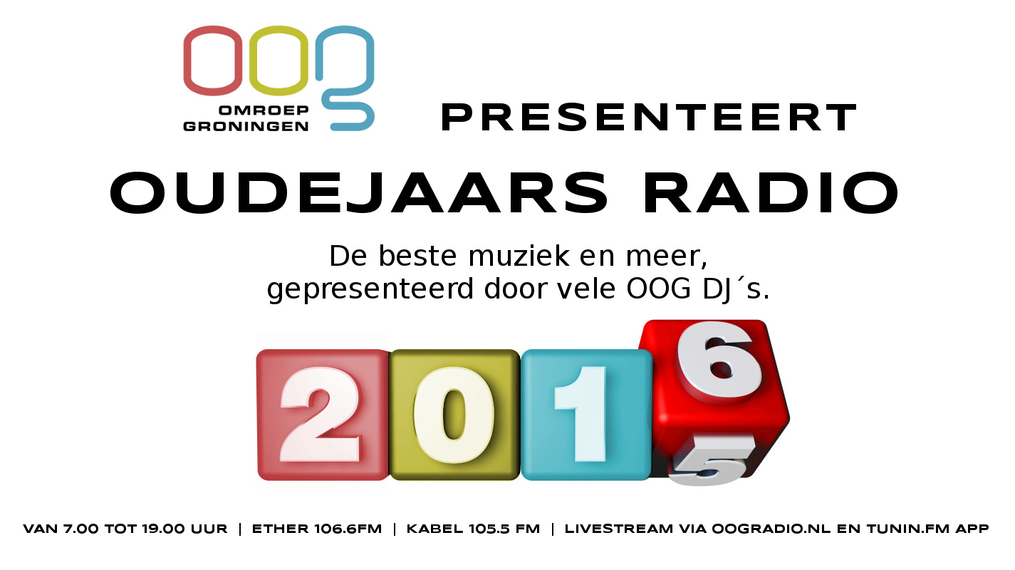 Zaterdag 28 december is de Super 106 te horen op OOG Radio. De lijst wordt gepresenteerd door Sieme Gerrijts, Hielke…