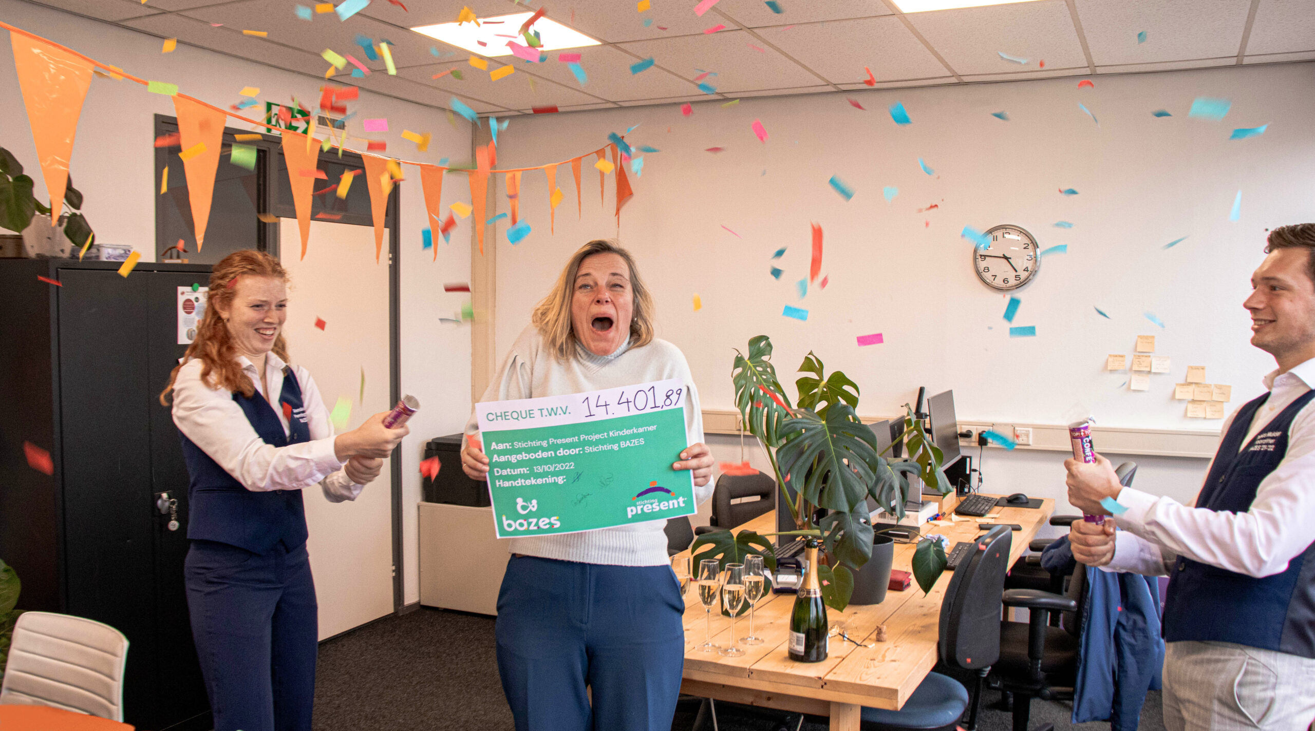 De BAZES, een groep van zeven Groningse studentenverenigingen, heeft vrijdag een cheque van 11.302 euro overhandigd aan het project Groningen…