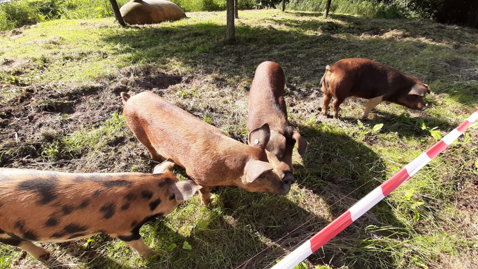 Vier varkens bestrijden aan de Kadijk op Zernike Campus de berenklauw. De varkens zijn deze week aan hun klus begonnen.…