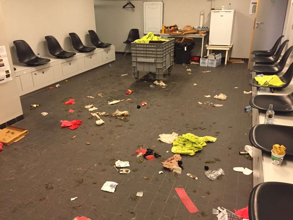 De Portugese voetbalclub Braga heeft een enorme puinhoop achtergelaten in de kleedkamer in het Euroborgstadion donderdagavond na de laatste Europa…