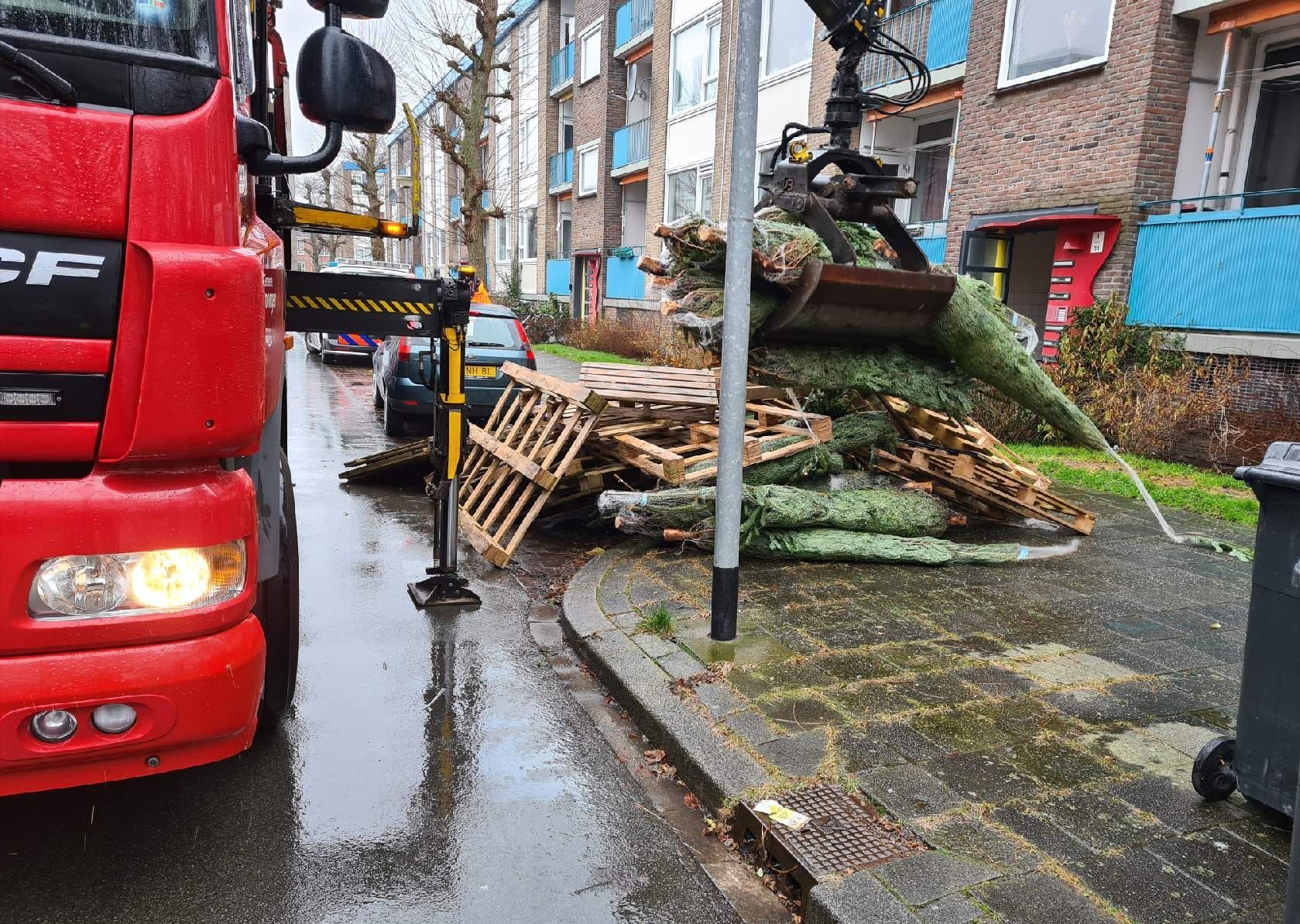 Agenten hebben maandagavond een brandstapel in de Voermanstraat door de brandweer laten blussen. Medewerkers van de gemeente hebben daarna de…