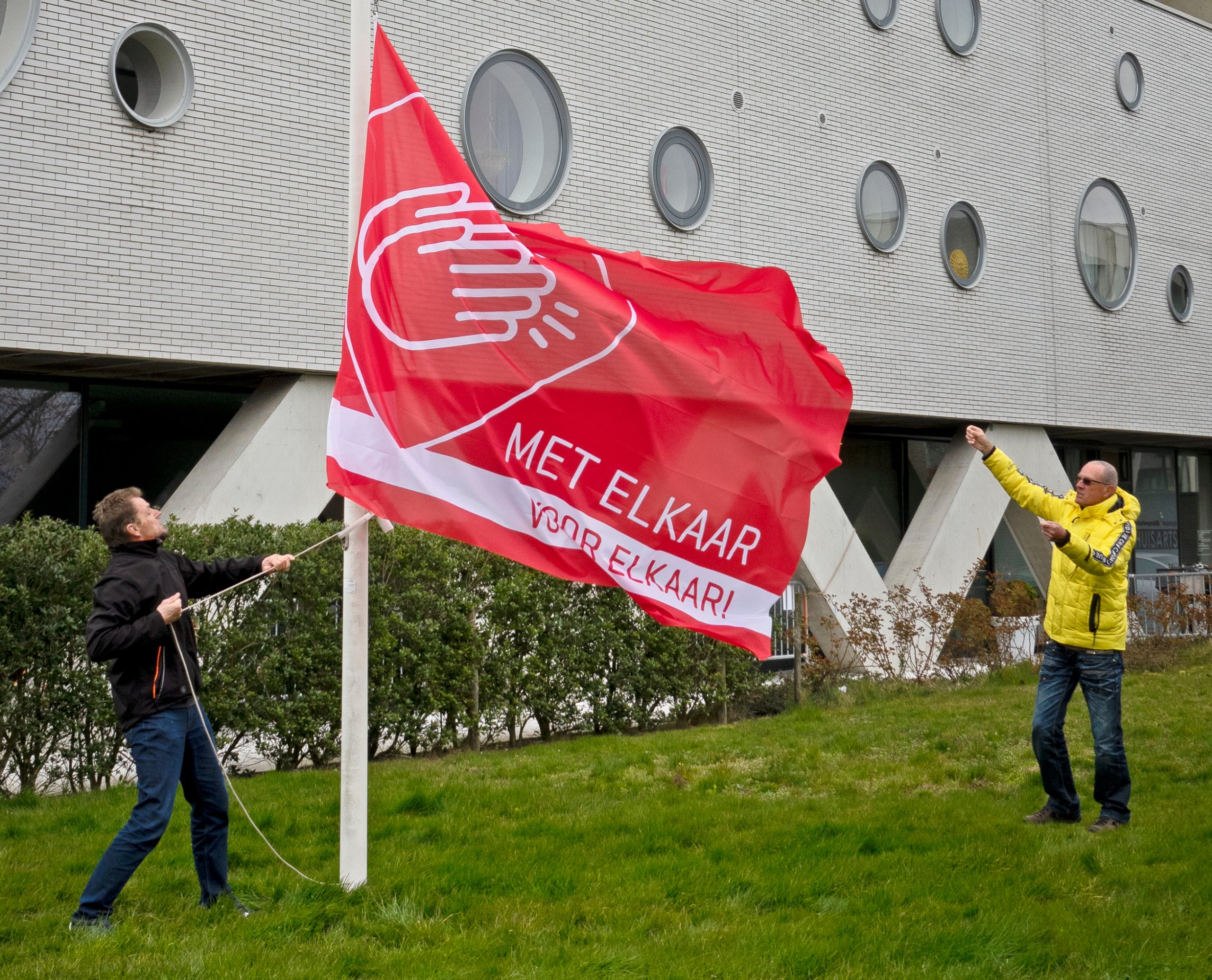 Bewoners van De Rokade aan de Sportlaan in Groningen-Zuid hebben woensdag een speciale vlag gehesen waarmee alle zorgmedewerkers een hart…