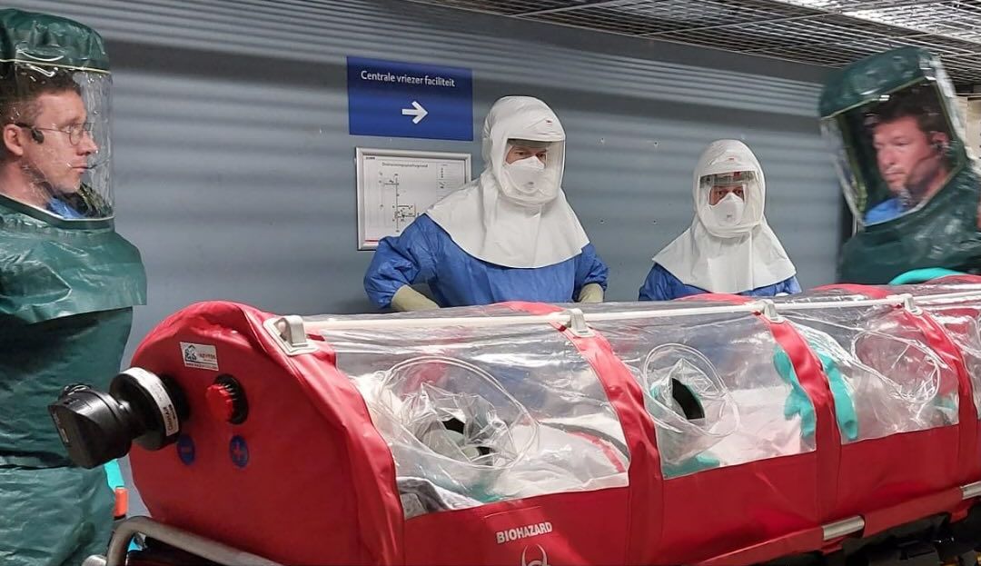 Compleet ingepakte mannen en vrouwen, een hermetisch afgesloten brandcard en een speciale ambulance kwamen er donderdagmiddag aan te pas bij…
