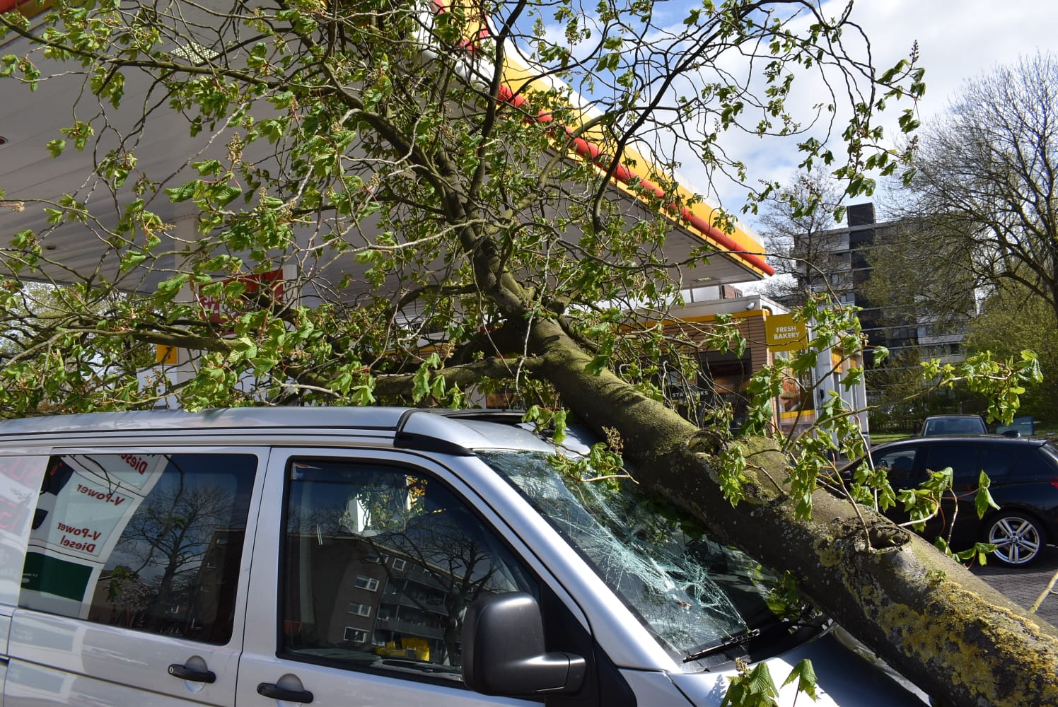 Bij een tankstation aan de Ketwich Verschuurlaan is woensdagmiddag een boom op een bestelbus gevallen. Dat meldt Mike Weening van…
