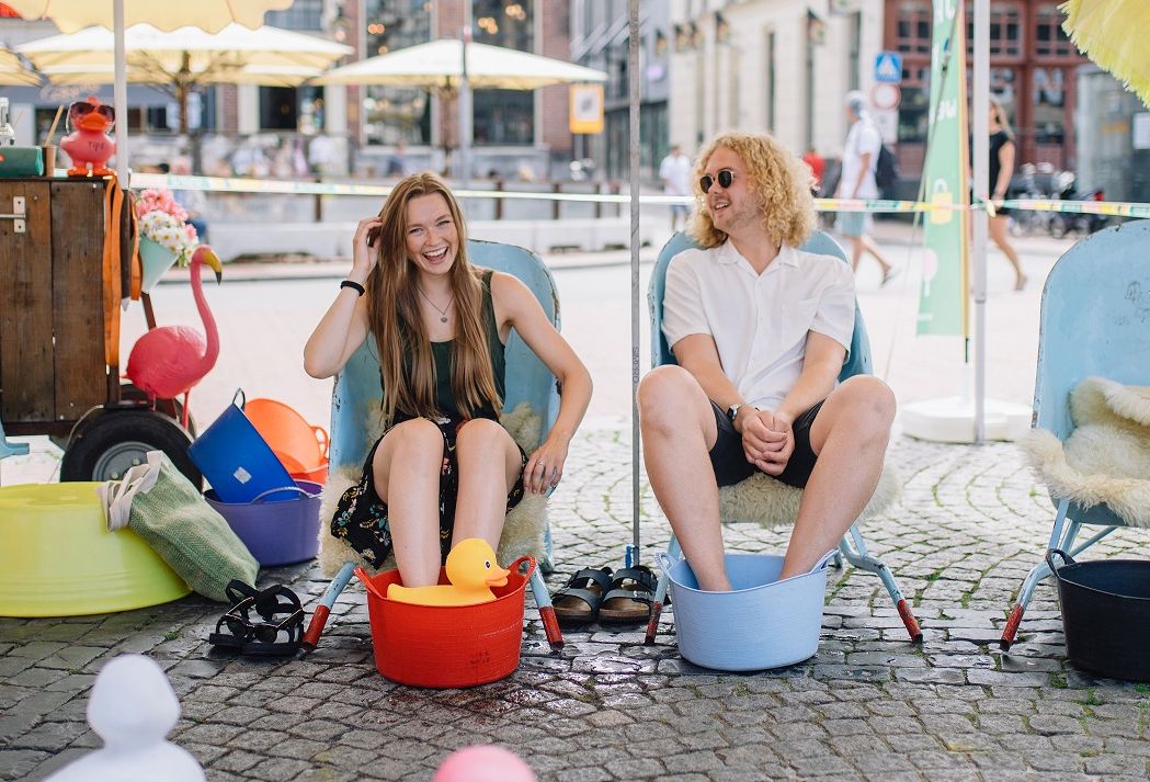 Bij de tafels op terras op de Grote Markt komen aanstaande zondag voetenbadjes te staan. Vanuit het programma Gastvrij Groningen…