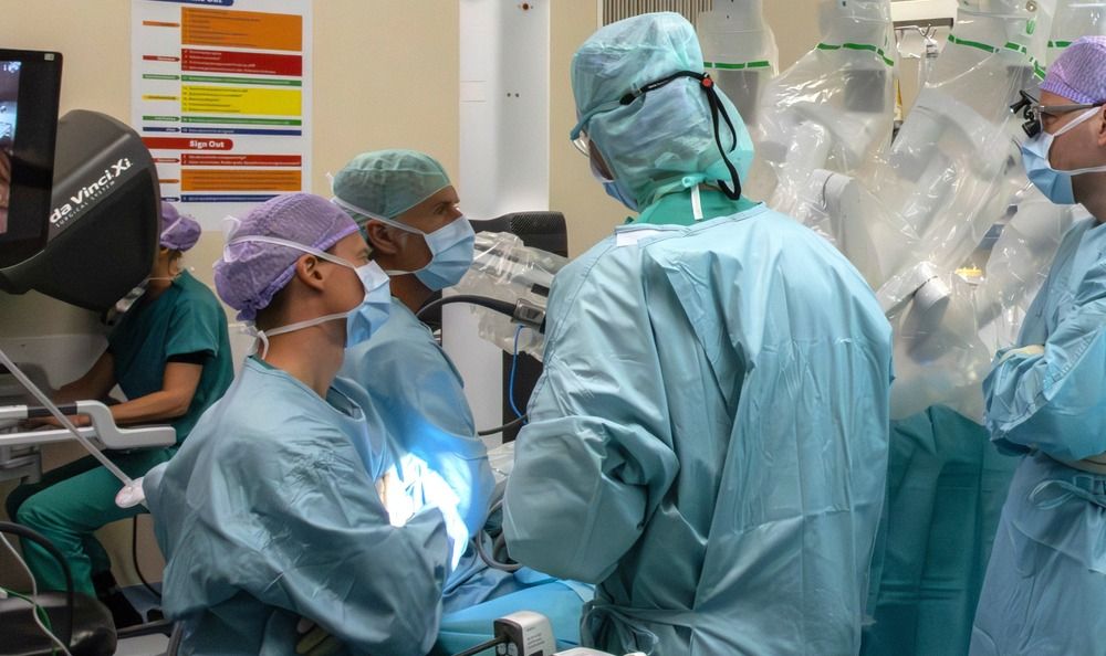 Voor het eerst is in Nederland een deel van een lever met hulp van een robot verwijderd bij een levende…