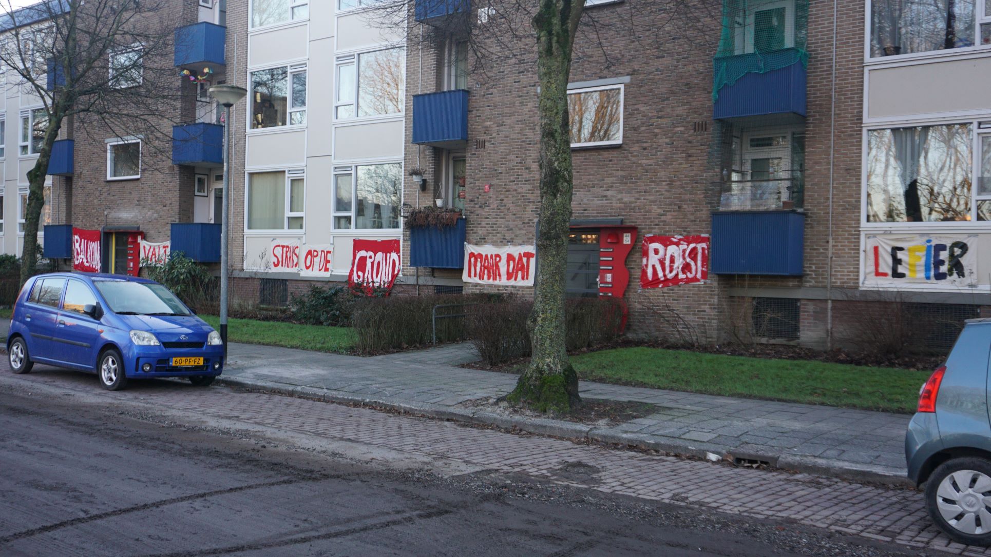 Bewoners van de portiekflats in Paddepoel-Zuid hebben dit weekend spandoeken gemaakt en opgehangen aan hun balkons. Met de spandoeken willen…