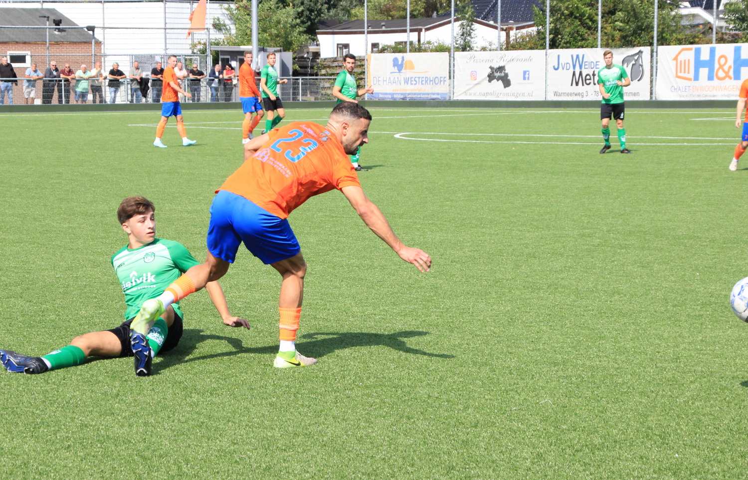 Het gecombineerde rugby- en voetbalveld van kunstgras op sportpark de Esserberg op de grens van Groningen en Haren is afgelopen…