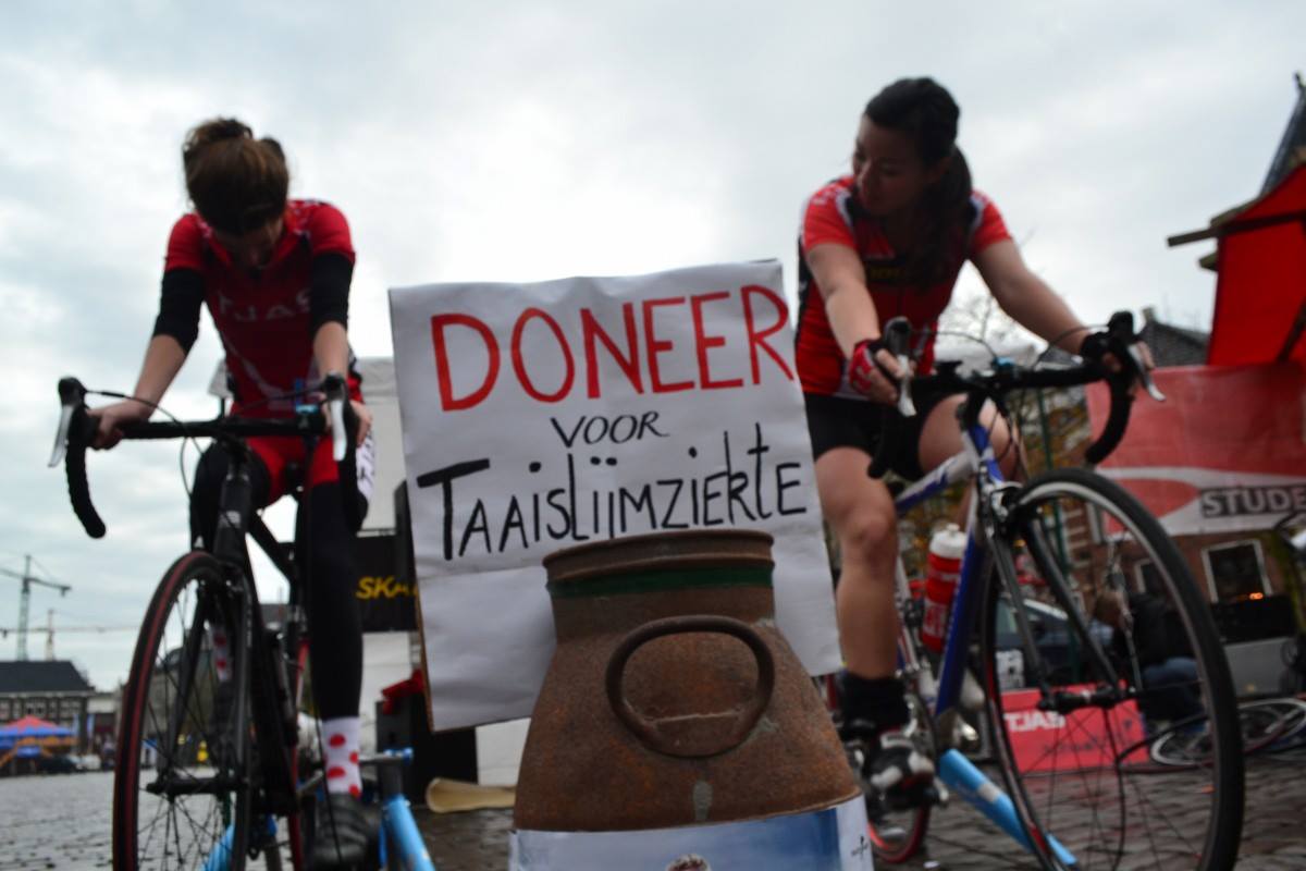 Op de Vismarkt wordt woensdag een etmaal lang gefietst door de Groninger Studenten Schaatsvereniging Tjas. Met de actie wordt geld…