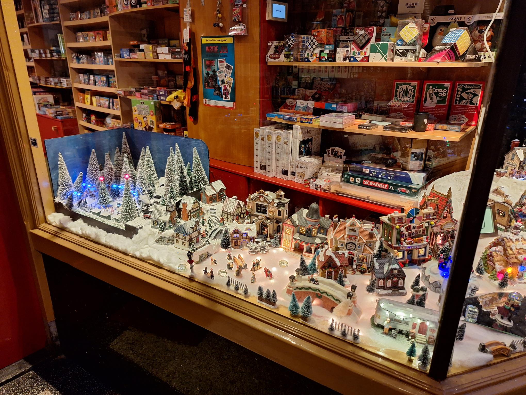 Er zijn vanaf dinsdag kerstdorpen te bewonderen in de etalages van twaalf winkels in de Oude Kijk in 't Jatsstraat…