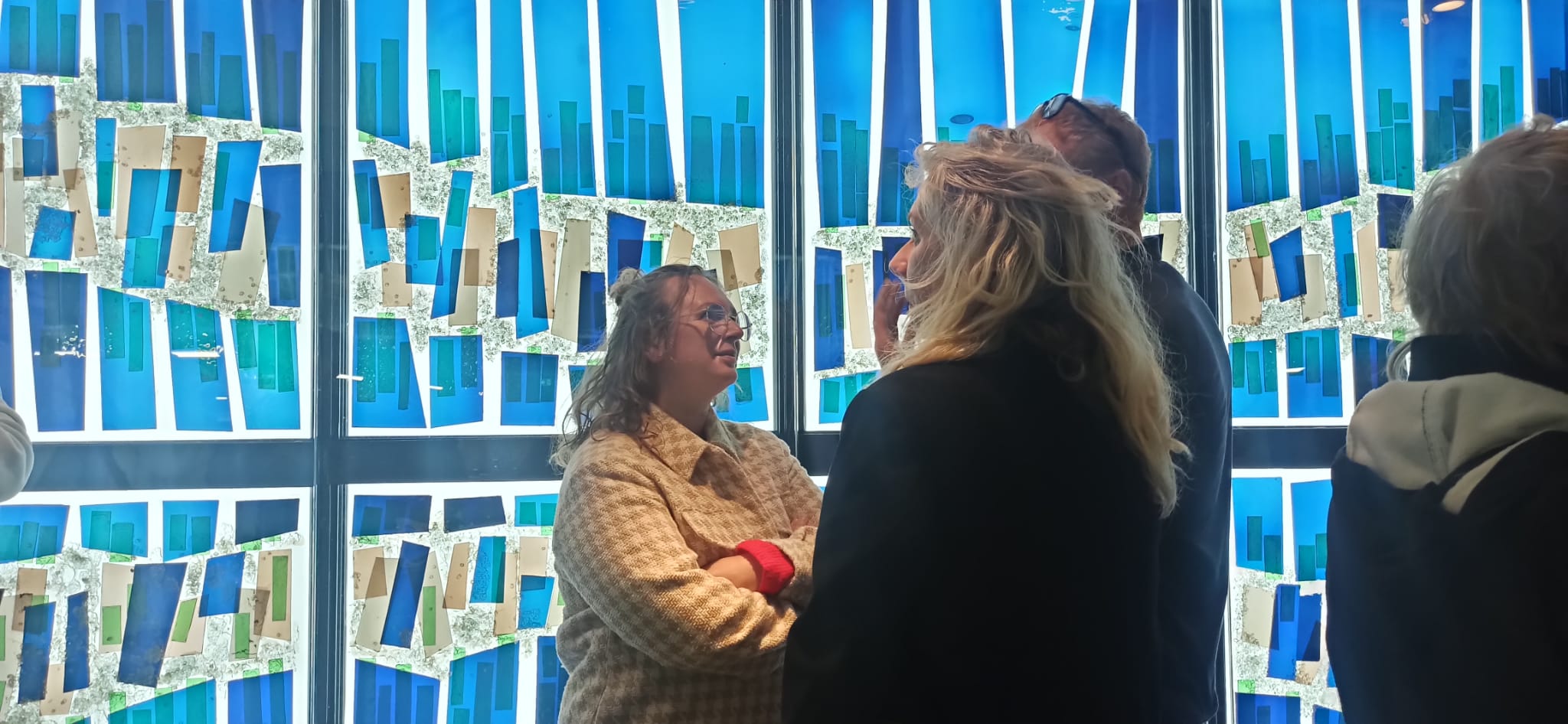 In de fietsenkelder onder Het Groot Handelshuis (de voormalige V&D) hangt een kunstwerk dat uit twintig delen glasappliqué bestaat. Kunstpunt…
